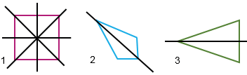Фигуры 2 и 3 имеют 1 ось симметрии.