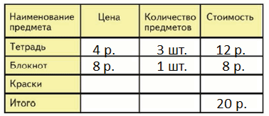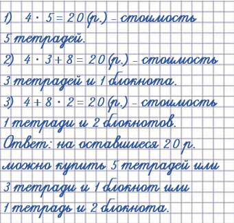 2 блокнота и 1 тетрадь: 8 2 + 4 = 20 (р.)