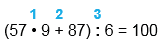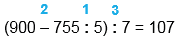 | (57 • 9 + 87) : 6 | (900 - 755 : 5) : 7 |