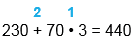 1) 70 • 3 = 210 2) 230 + 210 = 440 |