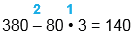 1) 80 • 3 = 240 2) 380 - 240 = 140 |