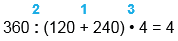 | (470 - 70) • 2 | 360 : (120 + 240) • 4 |