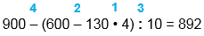 900 - (600 - 130 • 4) : 10 = 892