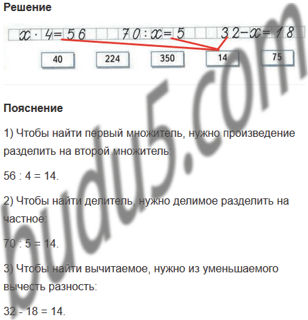 Соедини линией уравнение и карточку, на которой записано значение в этом уравнении.