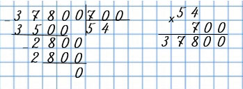 Умножу 700 на 5, получу 3 500 - столько десятков разделили.