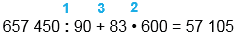 657 450 : 90 + 83 • 600