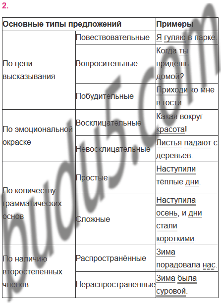 1. Изучите таблицу и расскажите, на какие группы делятся предложения.