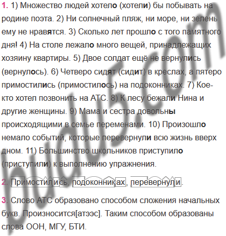 1) Множество людей хотел.. бы побывать на родине поэта. 2) Ни солнечный пляж, ни море, ни зелень ему не нрав..тся. 3) Сколько лет прошл.. с того памятного дня! 4) На столе лежал., много вещей, принадлежащих хозяину квартиры. 5) Двое солдат ещё не вернул..сь. 6) Четверо сид..т в креслах, а пятеро примостил..сь на подоконниках. 7) Кое-кто хотел.. позвонить на АТС. 8) К лесу бежал.. Нина и другие женщины. 9) Мама и сестра довольн.. происходящими в семье переменами. 10) Произошл.. немало событий, которые перевернул.. всю жизнь вверх дном. 11) Большинство школьников приступил., к выполнению упражнения.
