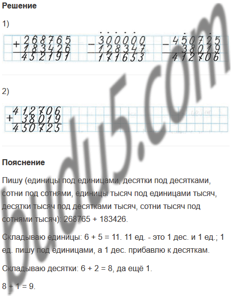 2) Выполни проверку вычитания сложением в третьем примере.