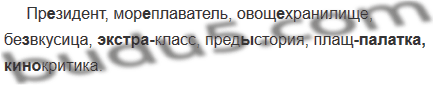 Пр..зидент, мор..плаватель, овощ..хранилище, бе..вкусица, (экстра)класс, пред..стория, плащ(палатка) (кино)критика.