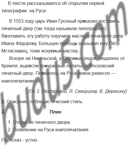 3. Составьте план текста, перескажите, дополнив рассказ известными вам сведениями о книгопечатании на Руси.