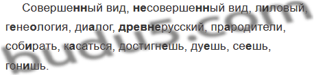 Соверше(н, нн)ый вид, (не)соверше(н, нн)ый вид, л..ловый, г..не..логия, ди..лог, (древне)русский, пр..родители, соб..рать, к..саться, достигн..шь, ду..шь, се..шь, гон..шь.