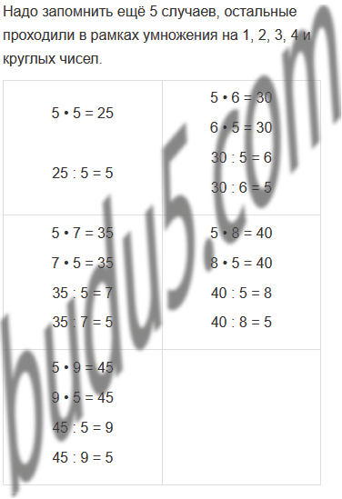 Задание № 1. Прочитай таблицу умножения на 5. Сколько новых случаев надо запомнить? Какие ещё равенства можно составить для каждого случая?