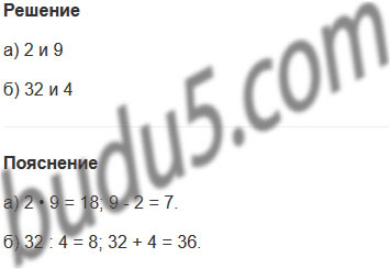Задание № 13. Подбери два числа: а) произведение которых равно 18, а разность 7; б) частное которых равно 8, а сумма 36.
