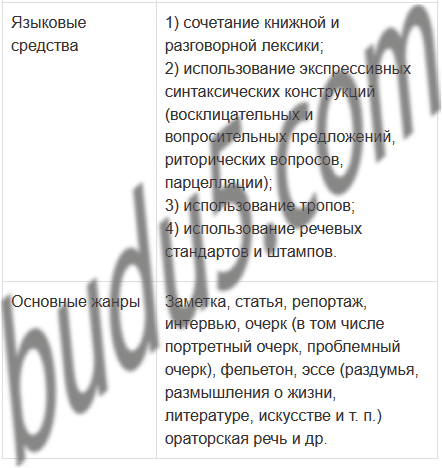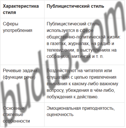 Используя информацию параграфа, составьте таблицу «Публицистический стиль», в которую включите графы: «Сферы употребления», «Речевые задачи (функции речи)», «Основные стилевые особенности», «Языковые средства», «Основные жанры».