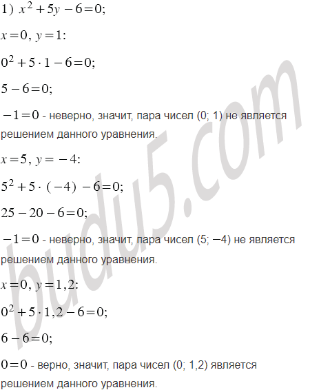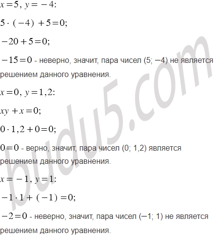 Какие из пар чисел (0; 1); (5; 4); (0; 1,2); (1; 1); (1; 1) являются решениями уравнения:
