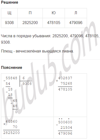 Задание № 6. Вычисли. Расположи ответы в порядке убывания и расшифруй слово. Что оно означает?