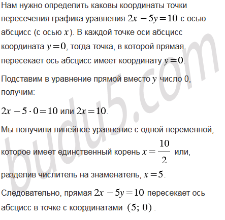 Каковы координаты точки пересечения графика уравнения с осью абсцисс?