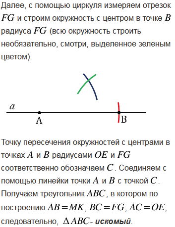 Объясните, как построить треугольник по трём сторонам. Всегда ли эта задача имеет решение?